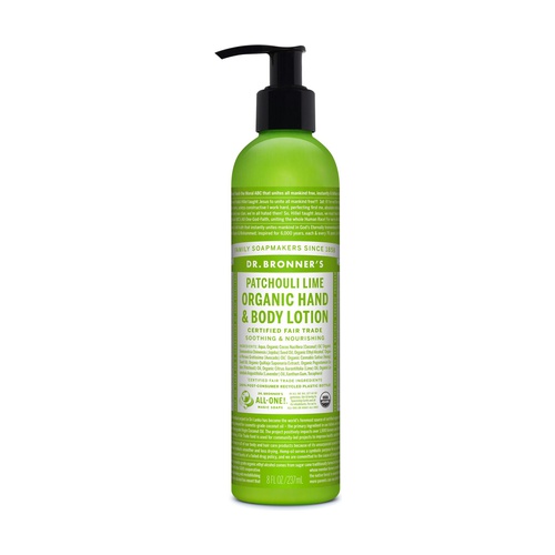 combinatie. Dr. Bronners gebruikt alleen biologische oliën voor een pure geur en plantaardige verzorging. Vegan. Bodylotion Patchouli limoen – Dr. Bronners