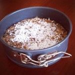 Mix in foodprocessor en verdeel het deeg gelijkmatig in cakevorm of lage schaal.